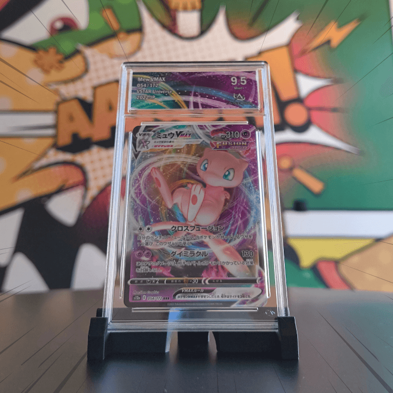 Cette Mew VMAX provient de la série japonaise VSTAR Universe et bénéficie d’un grade 9.5 attribué par Collect Aura, attestant d’un état proche du parfait.